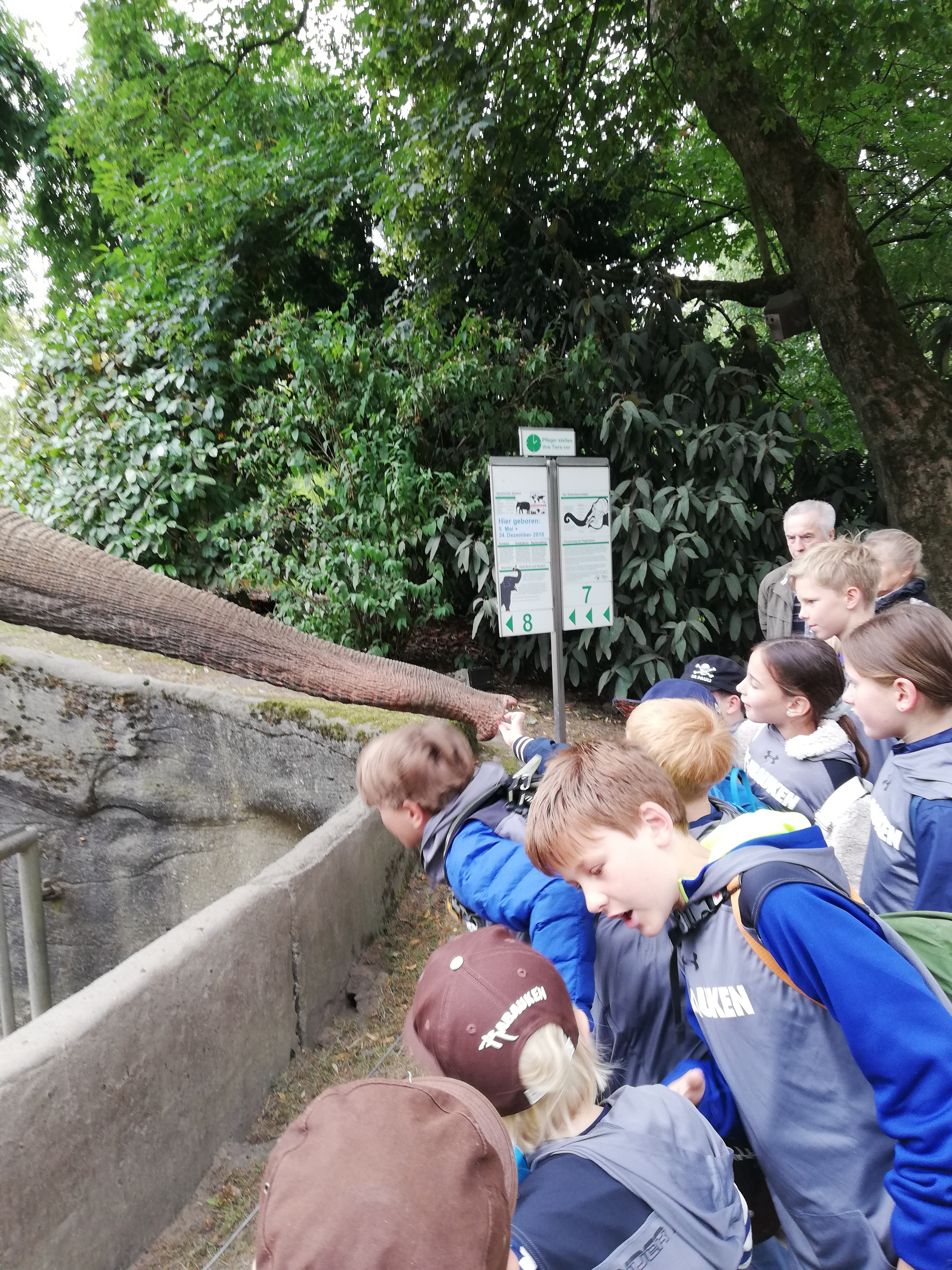 Der Tag startete um 9 Uhr am Eingang des Zoos, wo wir von Betreuerinnen der Zooschule abgeholt wurden. Schnell wurden die Rabauken in zwei Gruppen aufgeteilt und während die älteren sich auf den Weg machten, einen tierischen Wettbewerb im Zoo zu absolvieren, ging es für die jüngeren auf Geräuschesafari mit Hagi. Hier sammelten die jungen Rabauken viele unterschiedliche Geräusche der Tiere und gaben sie anschließend zusammen mit Hagi, einer Kuscheltier-Schnecke der Zooschule, wieder. Dabei mussten die Rabauken echte Überwindung zeigen, als sie unter Anleitung der Betreuerin eine echte Würgeschlange streicheln durften.
