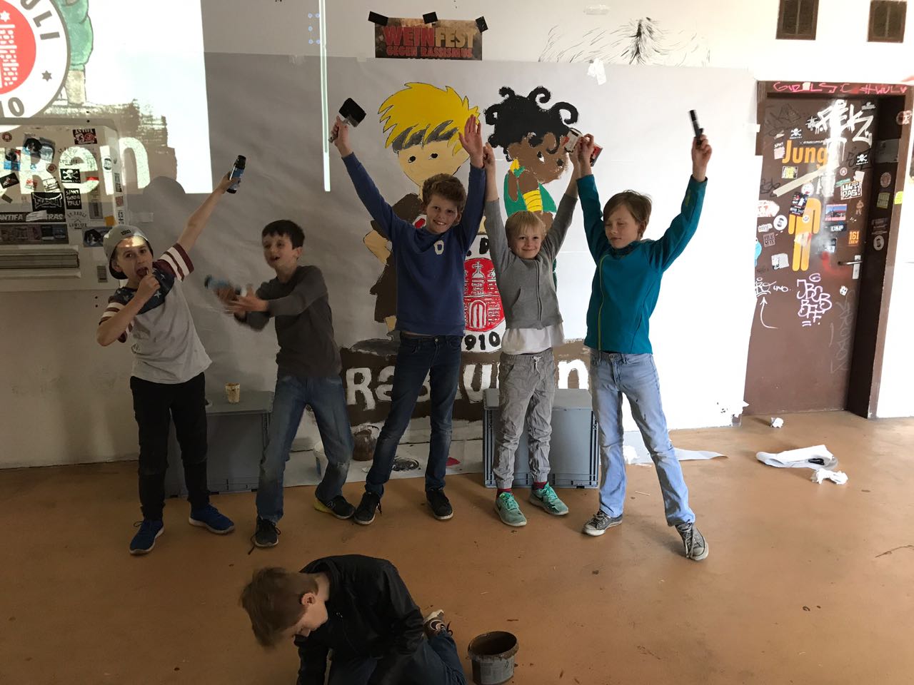 Sieben kleine Künstler haben sich am vergangenen Donnerstag (11.5.) vor unserem letzten Heimspiel der Saison bei uns im Millerntor-Stadion versammelt, um sich mit einer aufwendigen Choreo bei unseren Jungs für die phänomenale Rückrunde und den Verbleib in Liga zwei zu bedanken. Das überaus gelungene Werk konnte im Rabauken-Block beim Spiel gegen die SpVgg Greuther Fürth bewundert werden.